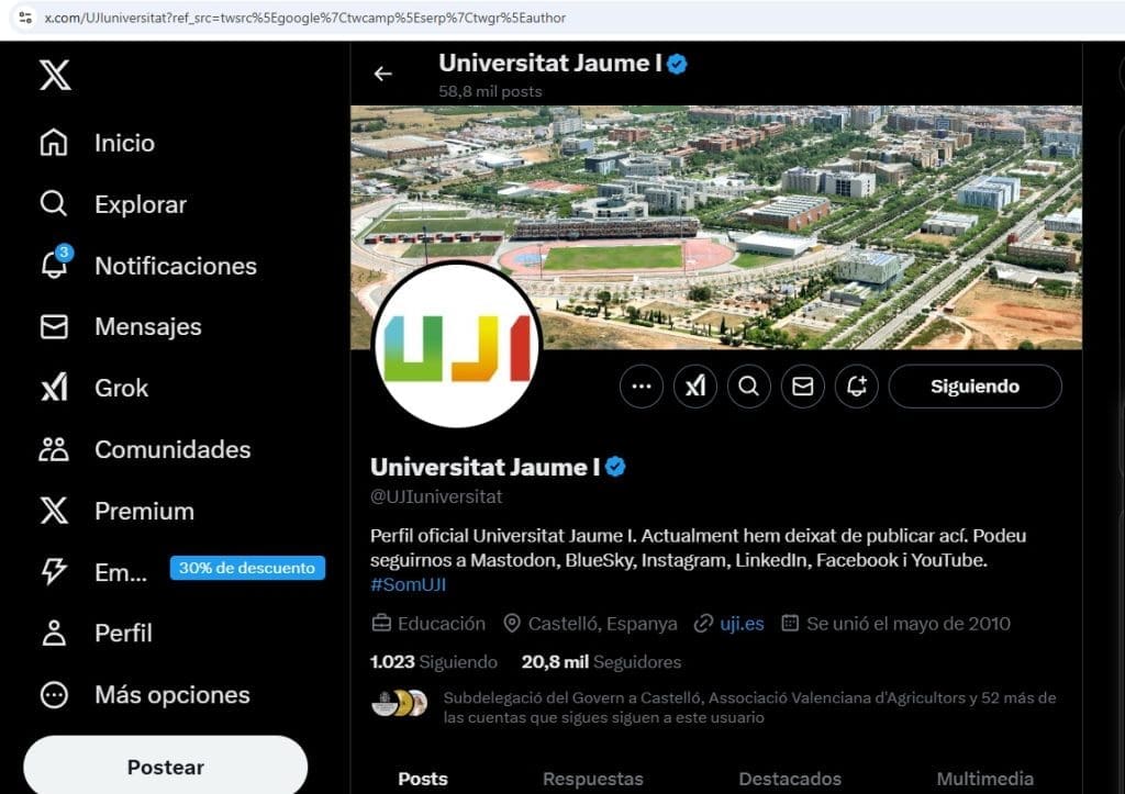 La Universitat Jaume I ha dejado de publicar en X, antes Twitter, ante la evolución de esta red social que -según ha indicado- «favorece comportamientos que atentan contra los valores democráticos».