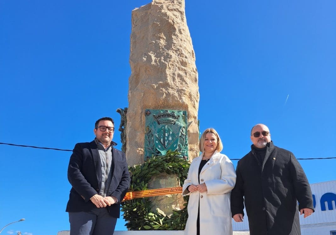 Gómez ha realizado la ofrenda de una corona de laurel al monolito de la glorieta Héroes del 9 de marzo, situada en Almassora, acompañada por la alcaldesa de esta localidad, María Tormo, el regidor y portavoz del gobierno del Ayuntamiento de Castelló de la Plana, Vicent Sales, junto con otros regidores y regidoras de los tres ayuntamientos.