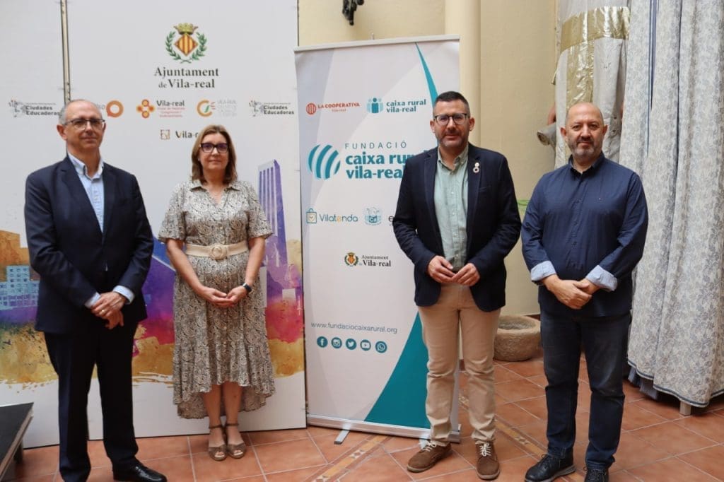 El concejal de Comercio, Diego A. Vila, y el director de Caixa Rural Vila-real, Manuel Cubertorer, han presentado la campaña, acompañados por el presidente de la Asociación de Hostelería y Ocio de Vila-real (Ashiovi), Emilio Miralles, y la secretaria de la Unió de Comerç de Vila-real (Ucovi), Tere Esteve.