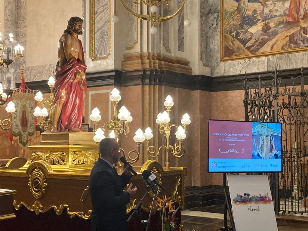 La presentación de la carroza restaurada ha tenido lugar hoy en la iglesia Arciprestal, en un acto que ha contado con la presencia, además del alcalde, del presidente de la Cofradía de la Sangre, Felipe Monfort, el prior de la cofradía, mosén Vicent Gimeno, el presidente de la Junta Central de Semana Santa, Pascual Sanz, el delegado diocesano de la Junta de Semana Santa, Pascual Lluís Segura, el presidente de la Fundación Caixa Rural Vila-real, Enric Portalés, además de miembros de la cofradía y de la Junta Central de Semana Santa y concejales del Ayuntamiento de Vila-real.