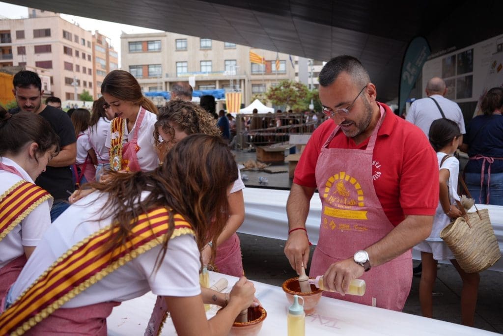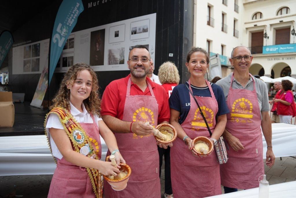 El Ayuntamiento proporcionó a los participantes, entre ellos el alcalde del municipio, José Benlloch, el mortero y los ingredientes necesarios para realizar este tradicional manjar.