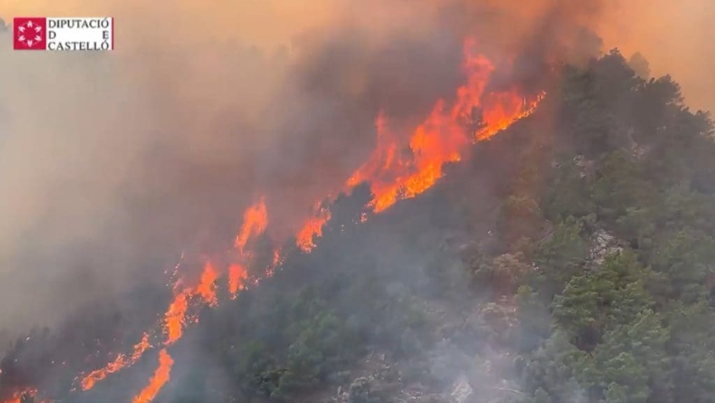 Las redes sociales del consorcio de bomberos de Castelló mostraban la virulencia de las llamas en un video con imágenes de las siete de la tarde que mantiene en vilo a toda la provincia por la magnitud del fuego.