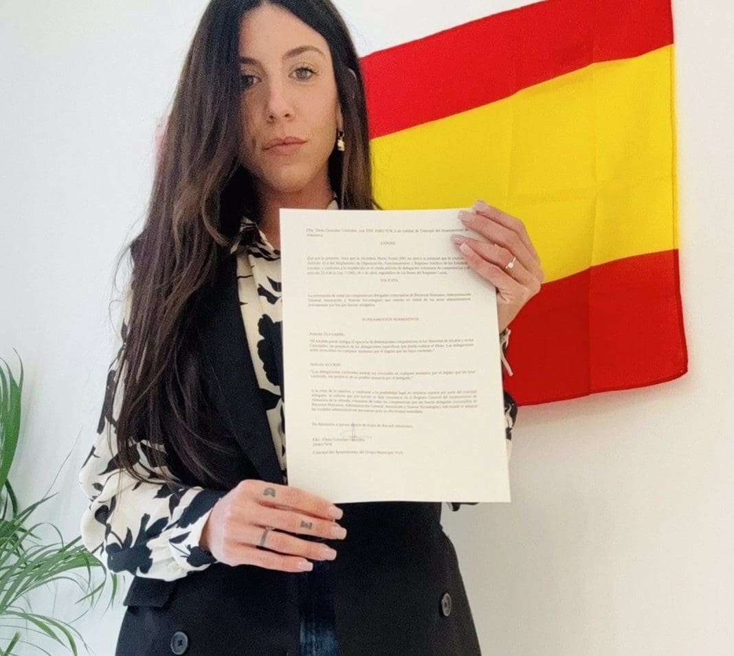 La concejala de Vox en el Ayuntamiento de Almassora, Elena González, ha registrado hoy oficialmente su baja del equipo de Gobierno y su renuncia a todas las competencias que ostentaba, de tal manera que pasa a ejercer desde hoy una oposición «seria y responsable, alejada de traidores, engaños, mentiras y artimañas, defendiendo los valores y principios con los que fue elegida por los vecinos de Almazora», según ha indicado la presidenta provincial de Vox en Castellón, Llanos Massó.