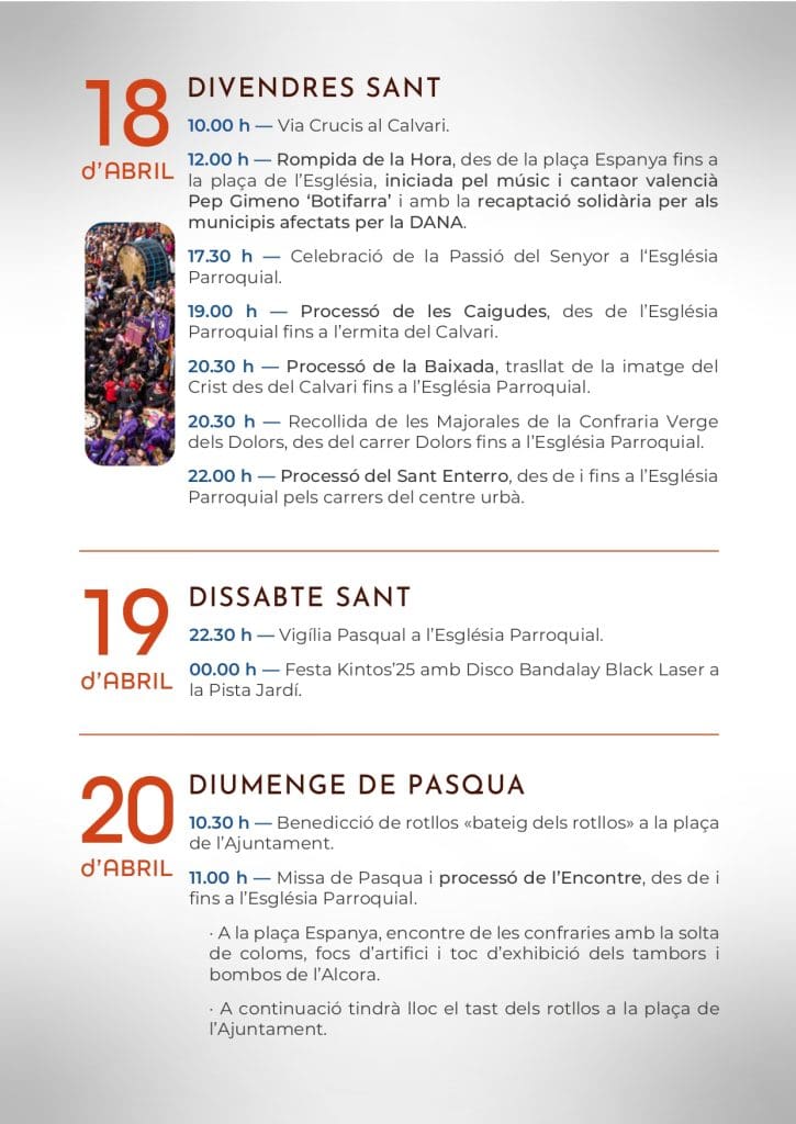 L’Alcora ultima detalles para una Semana Santa y una Pascua que ha logrado convertirse en referente, en especial por la emblemática ‘Rompida de la hora’ del Viernes Santo. No obstante, además de esta fiesta y su reconocimiento, son muchos otros los actos de estos días en la capital de l’Alcalaten.